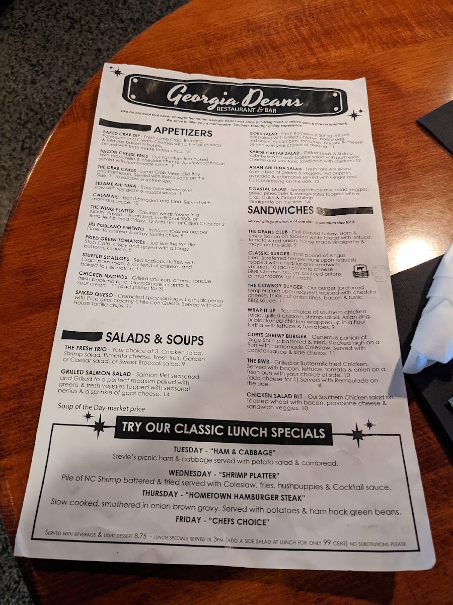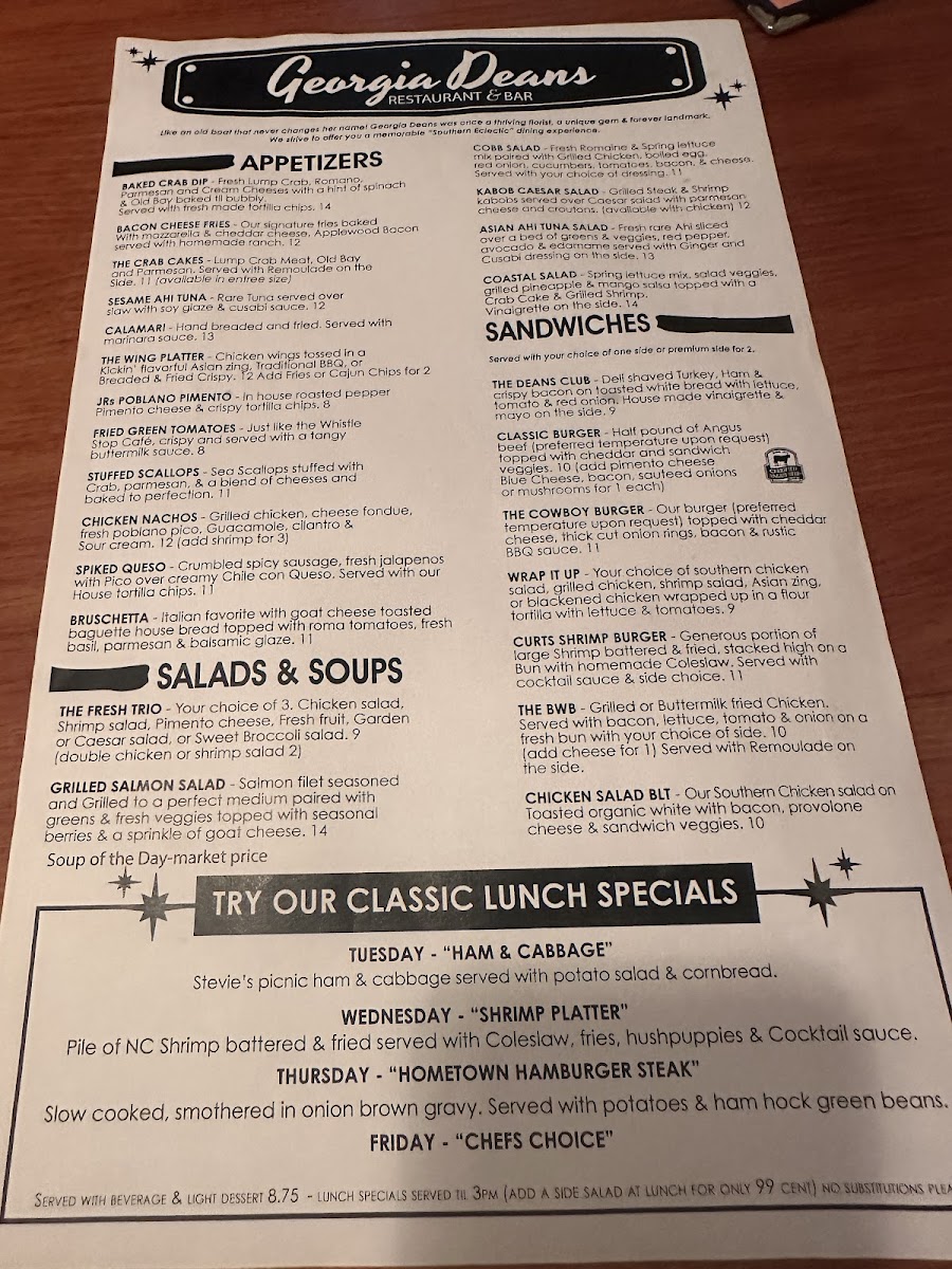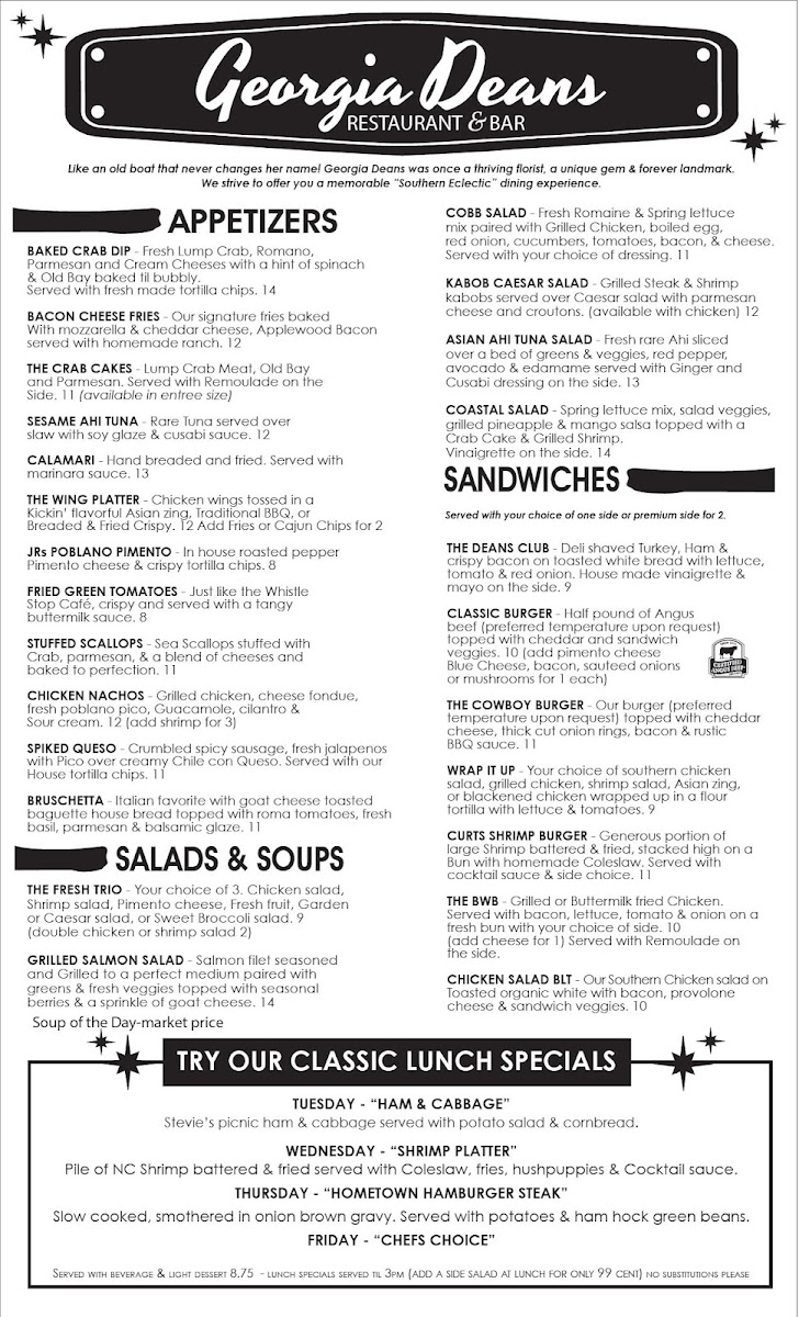 Discover the Irresistible Flavors of Georgia Deans Restaurant & Bar Menu